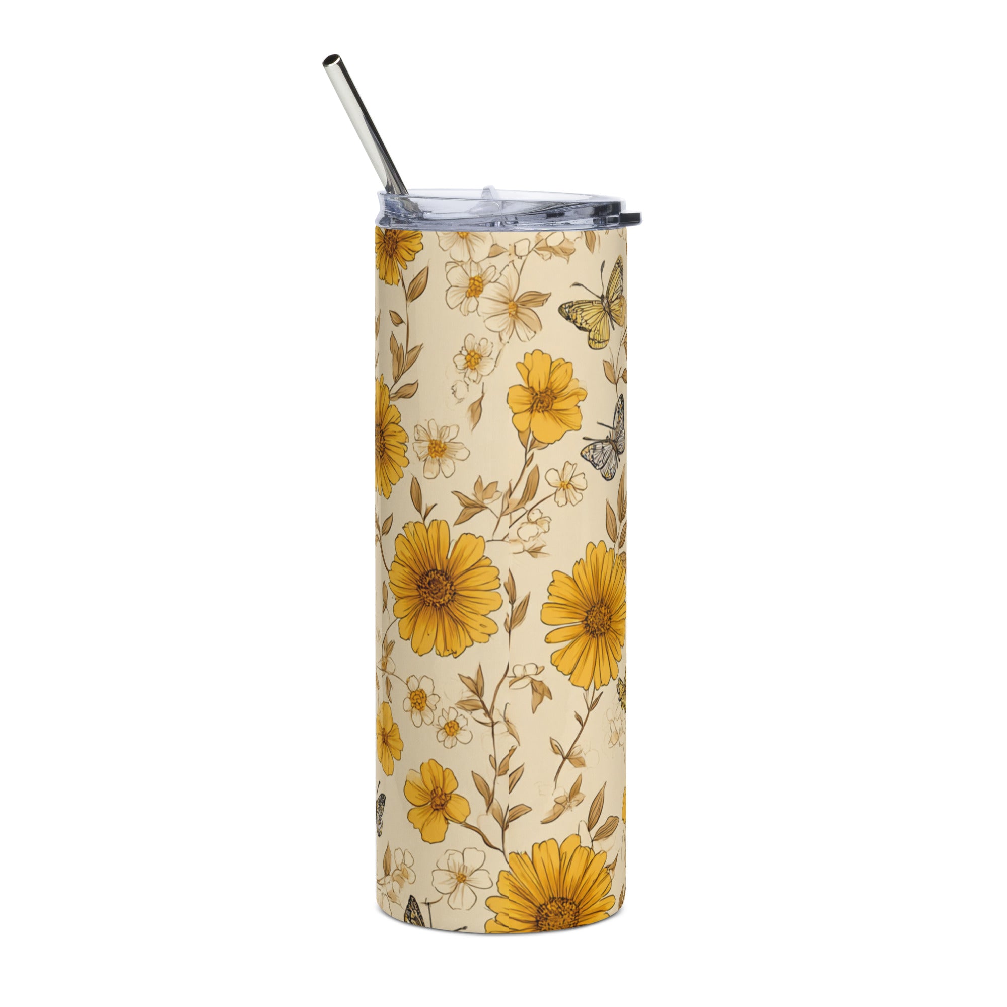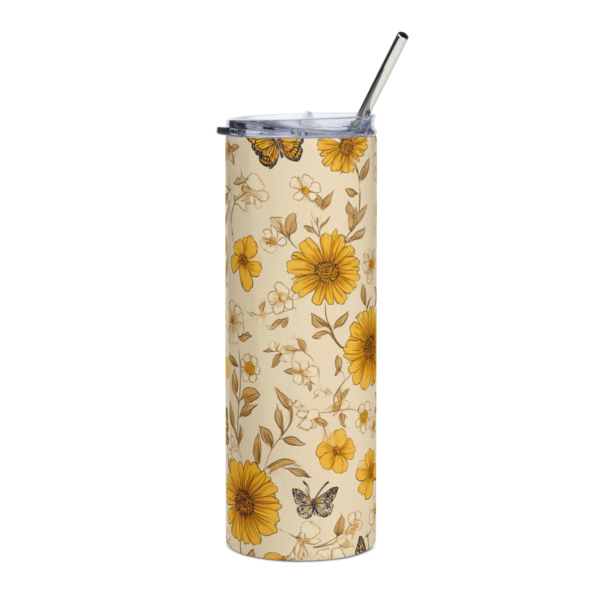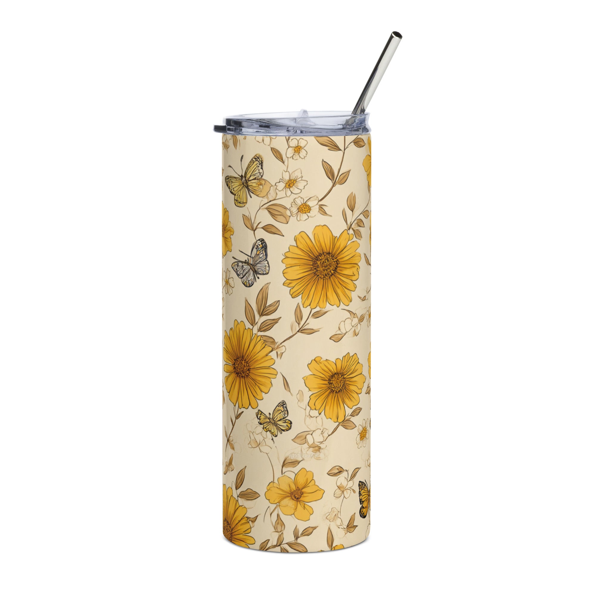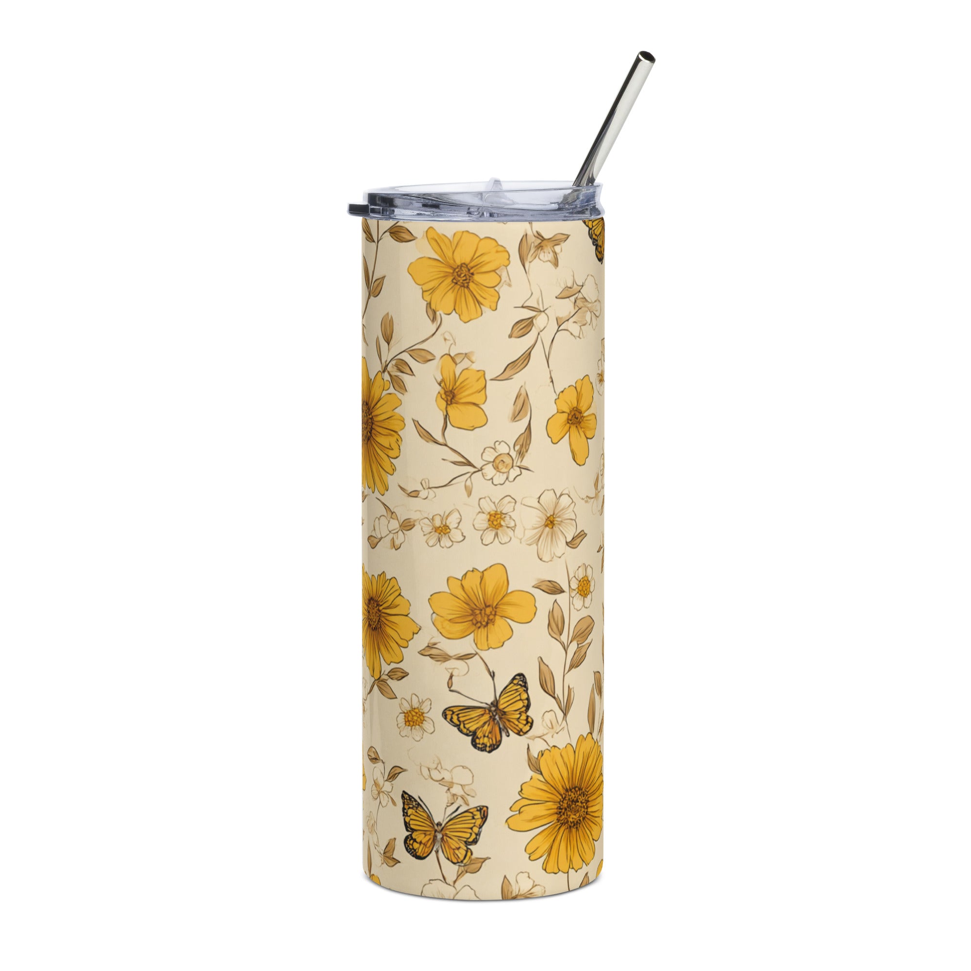 Enjoy hot or cold drinks on the go with this stylish stainless steel tumbler! This reusable tumbler with a metal straw is a perfect combo for hot or cold drinks at any time of the day.