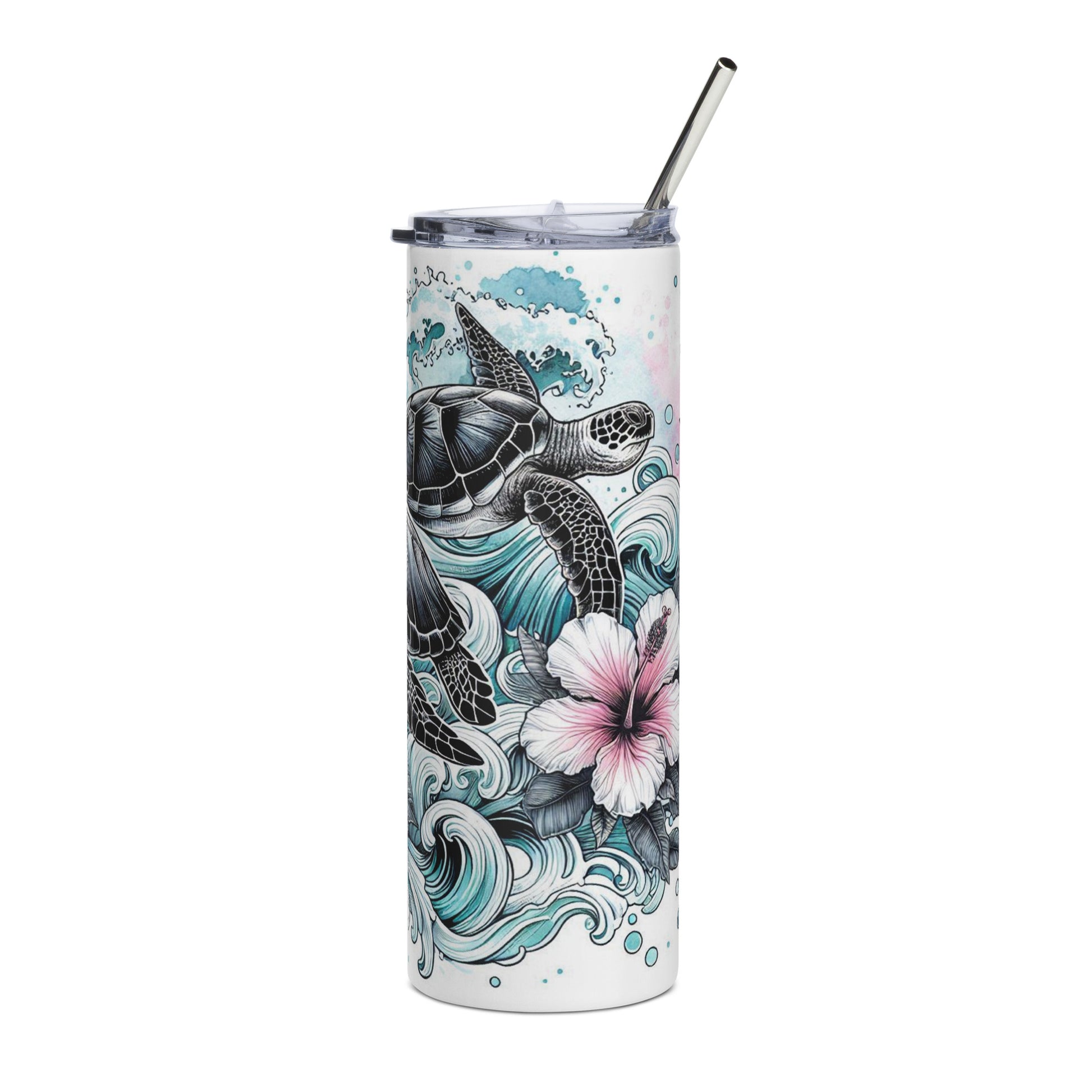 Enjoy hot or cold drinks on the go with this stylish stainless steel tumbler! This reusable tumbler with a metal straw is a perfect combo for hot or cold drinks at any time of the day.